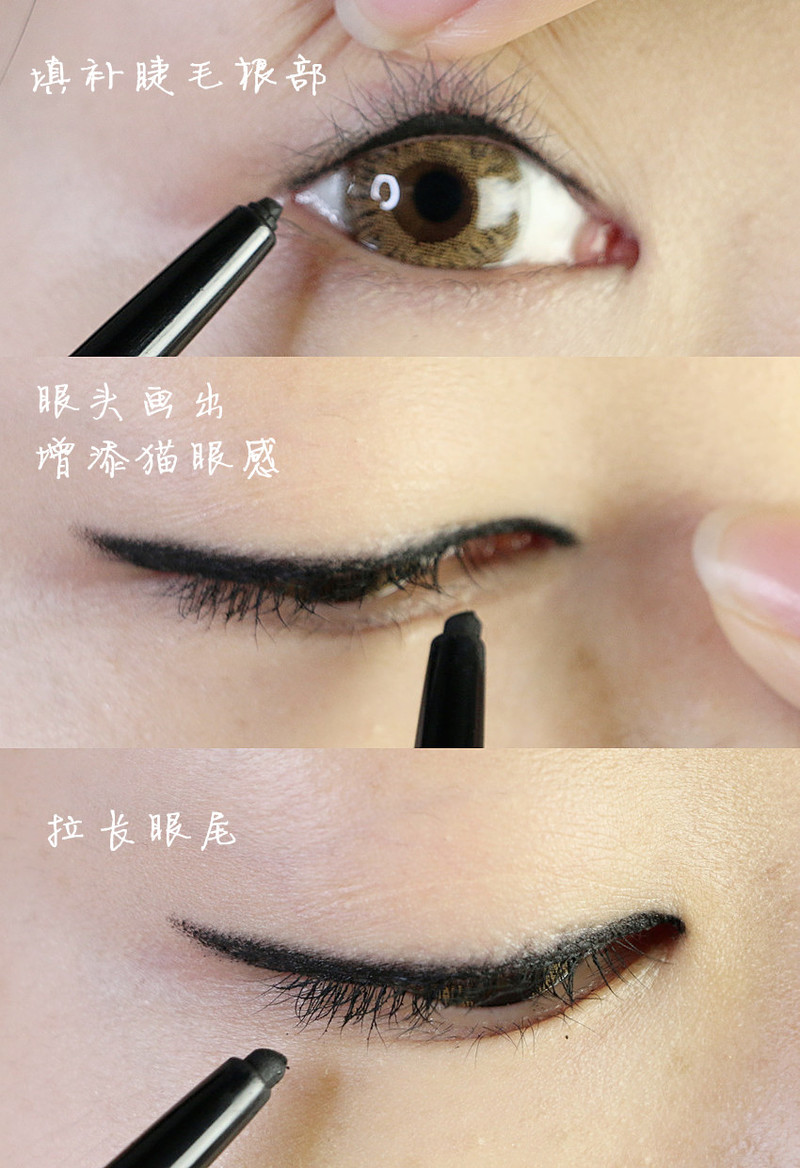 小Tips:可以适当拉长眼头眼尾的哟,眼型拉长,眼神更媚,更能增添女人味~